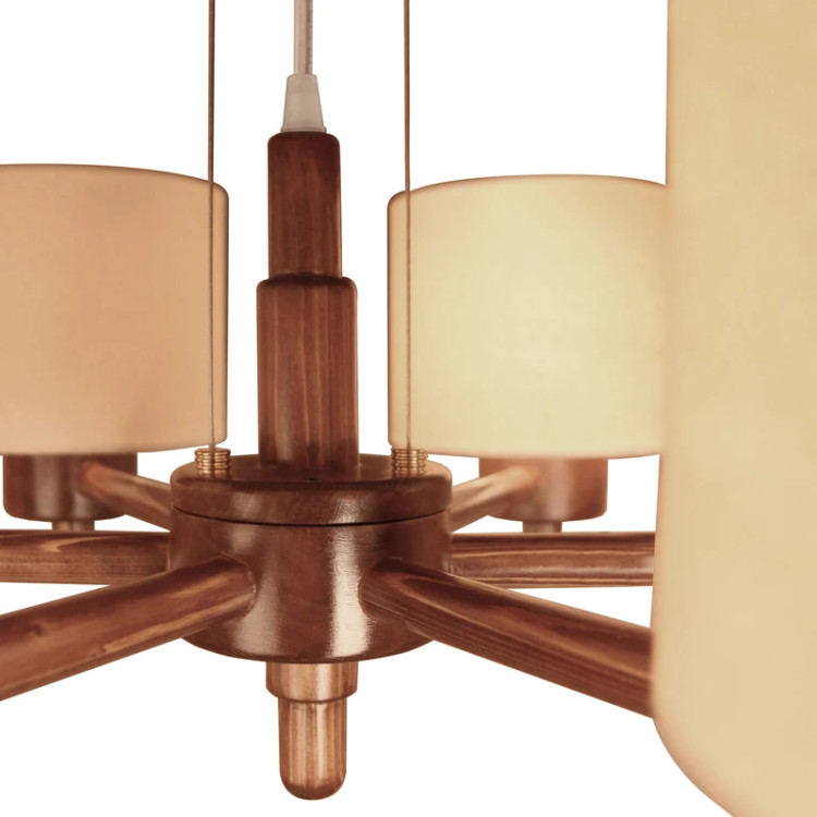 محصول Md6 با ساختاری از بدنه چوب طبیعی و شید کتان قابل شستشو تلفیق گرم و زیبایی را به نمایش می گذارد ، این لوستر دارای 6 شعله با سرپیج E27 سرپیچ پایه لامپ معمولی یا LED بهره می برد که هر خریداری با سلیقه خود می تواند از لامپهای متفاوتی در آن استفاده کند ، البته که استفاده از لامپهای آفتابی زیبایی این محصول را دو چندان می کند و به محل زندگی و کار شما گرمایی از جنس نور اضافه می کند ، شید تمام محصولات مسینا ضد آب بوده و از این رو برای نظافت و شستشوی سالانه طبق دستور العمل تگ شستشوی نصب شده روی شیدهنگام بازکردن بسته بندی می توانید آن را به راحتی تمیز کنید.